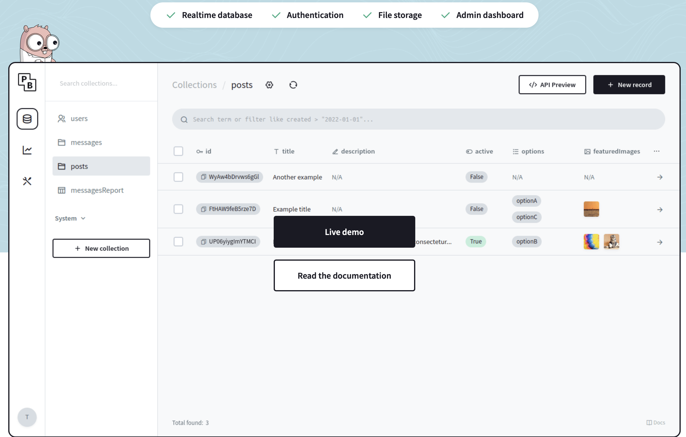 - Real-time Backend for Web/Mobile Apps – Use Pocketbase as a primary backend for apps needing authentication, file storage, and real-time database updates.
