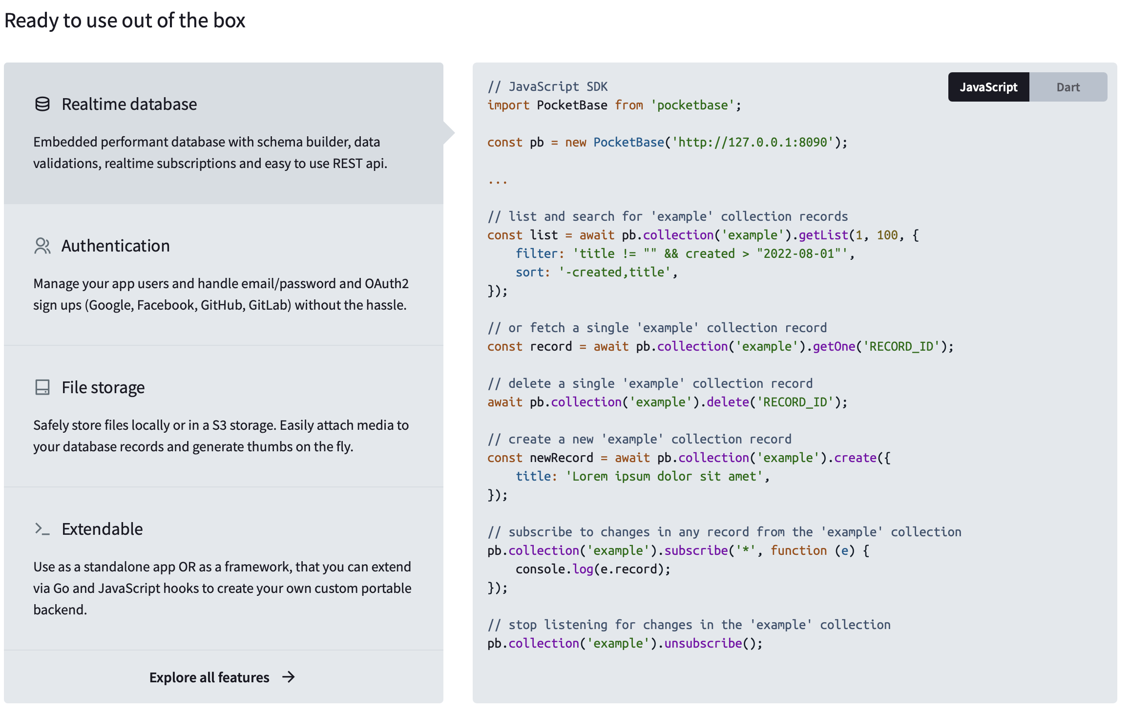 Features of Pocketbase